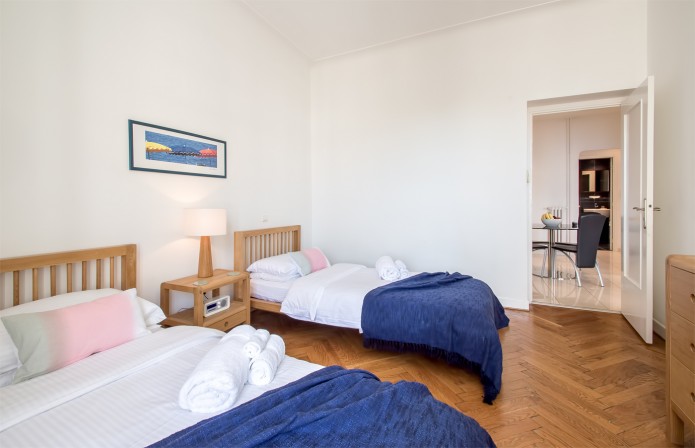 Bright apartment, very central and well served by supermarkets, restaurants. Nice size of the rooms.
