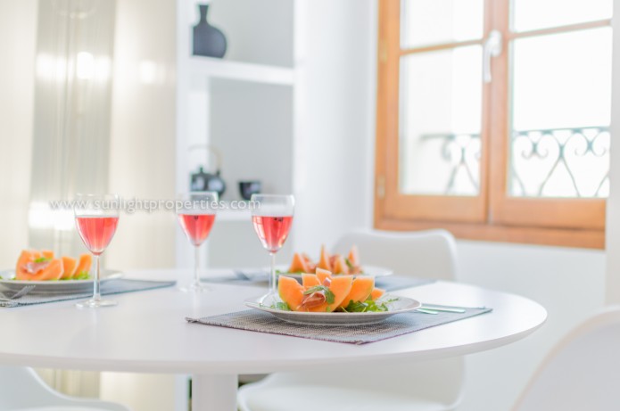 There is a circular dining table and three Scandinavian-style chairs for convenient quick bites, lazy brunches or animated evening feasts.